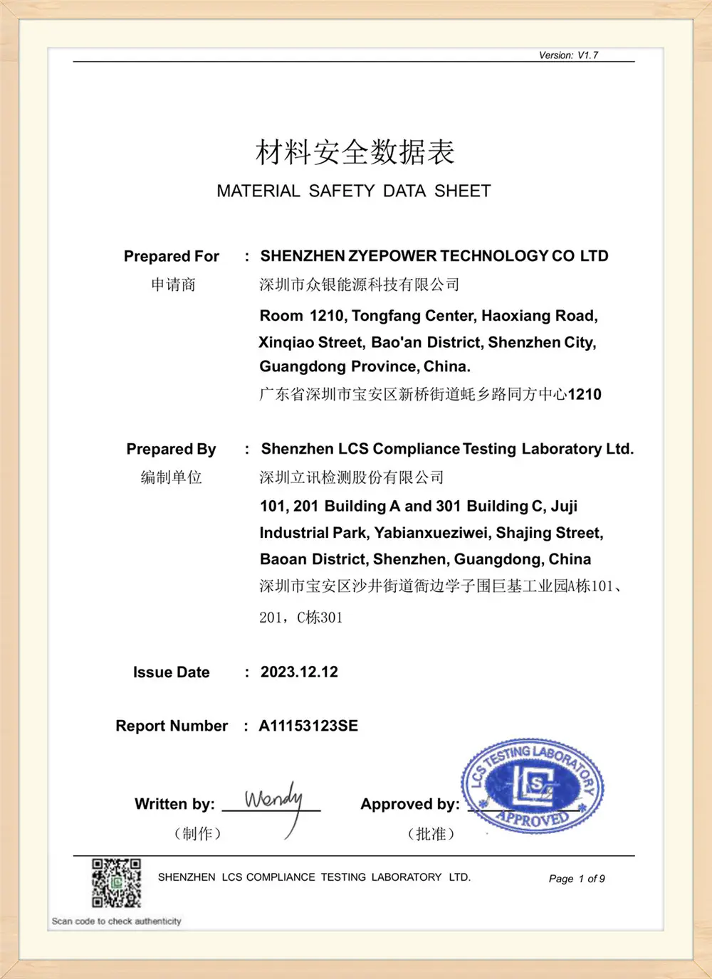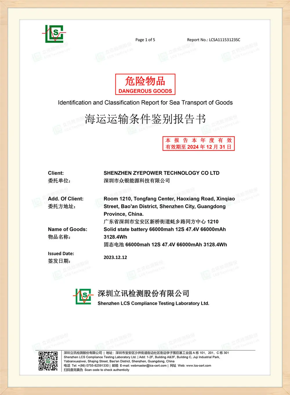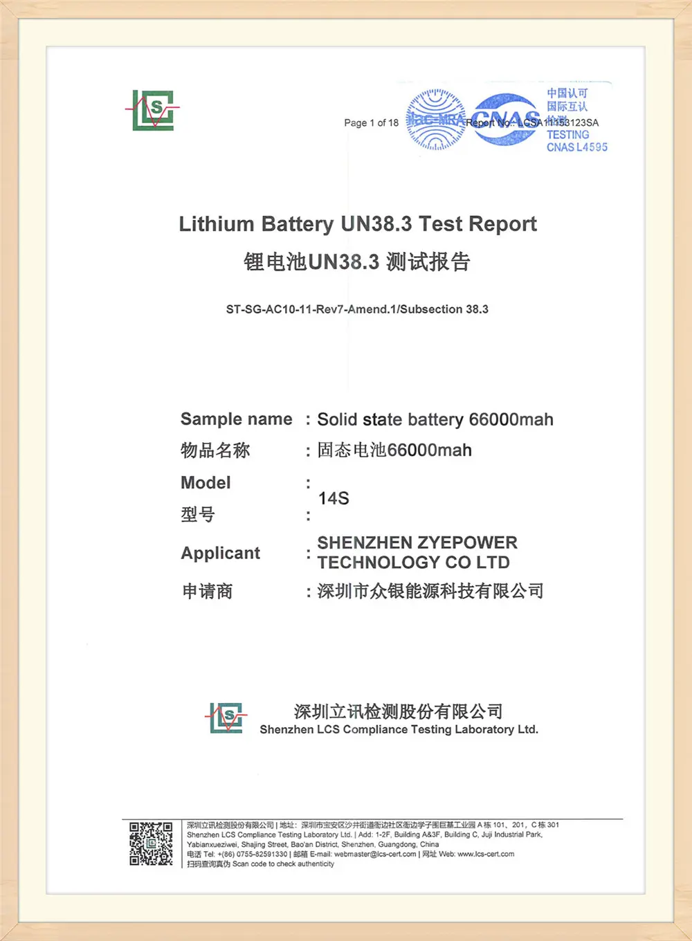 Zyebatteypersegue sempre la filosofia aziendale di "qualità prima, orientata al servizio, integrità che mantiene promesse". Per essere il miglior e più stabile fornitore di batterie, forniamo una tecnologia a batteria ricaricabile di alta qualità e Zyebattey ha superato molte certificazioni di autorità, come ISO9001: 2015, UL, CE, FCC, UN, 3C ecc.