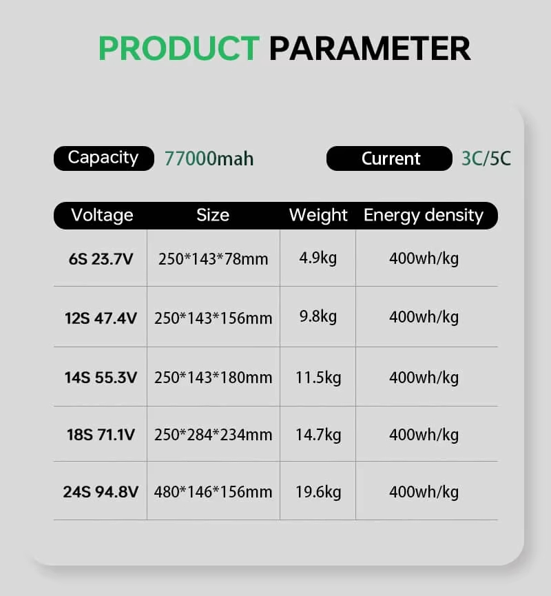 | 24S | 480*146*156mm | 19,6 chilogrammi | 400wh/kg |